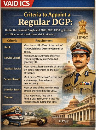 The selection of a DGP is governed by the landmark Prakash Singh vs. Union of India case, intended to insulate the police from political pressure.