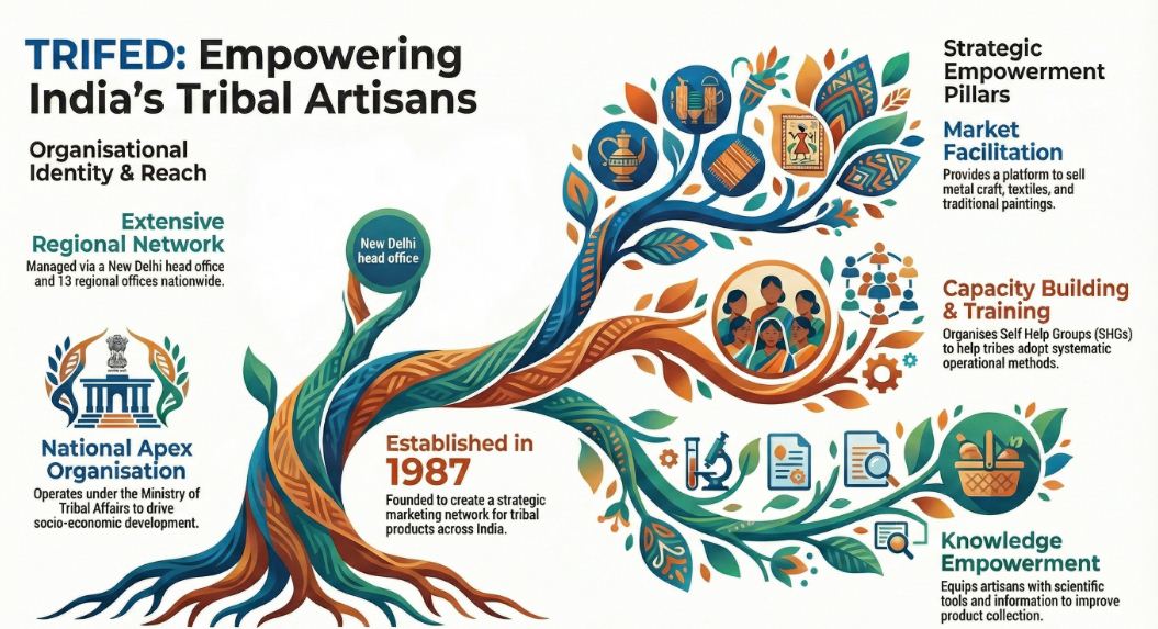 The Tribal Co-operative Marketing Development Federation of India (TRIFED), established in 1987, acts as a facilitator. Its role is twofold: