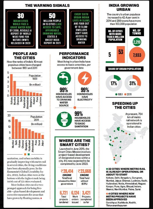 - Economic role: Urban India contributes ~65–70% of GDP despite housing a smaller population share.