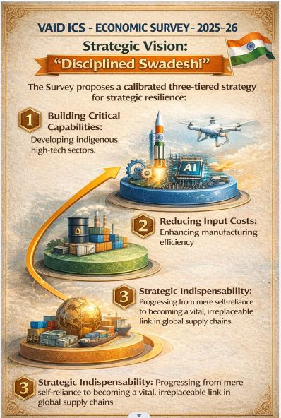 - रणनीतिक अपरिहार्यता: वैश्विक आपूर्ति श्रृंखलाओं में भारत को एक अनिवार्य कड़ी बनाना।