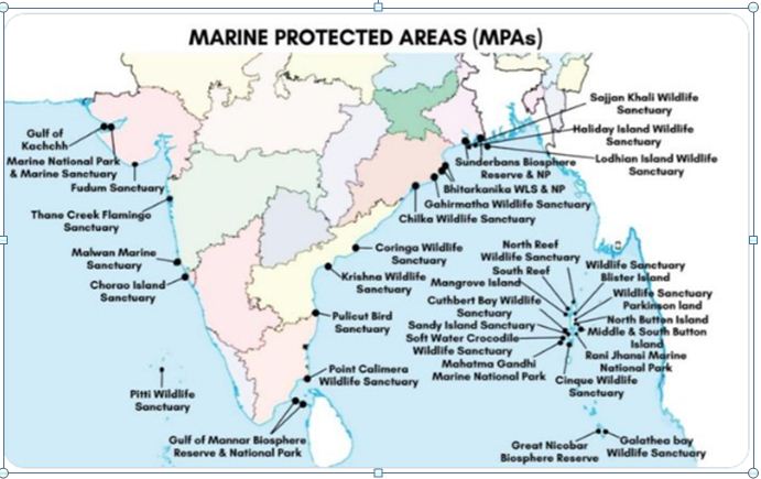 - As of recent data, India has over 130 Marine Protected Areas along its coastline and around its island territories (Andaman & Nicobar and Lakshadweep).