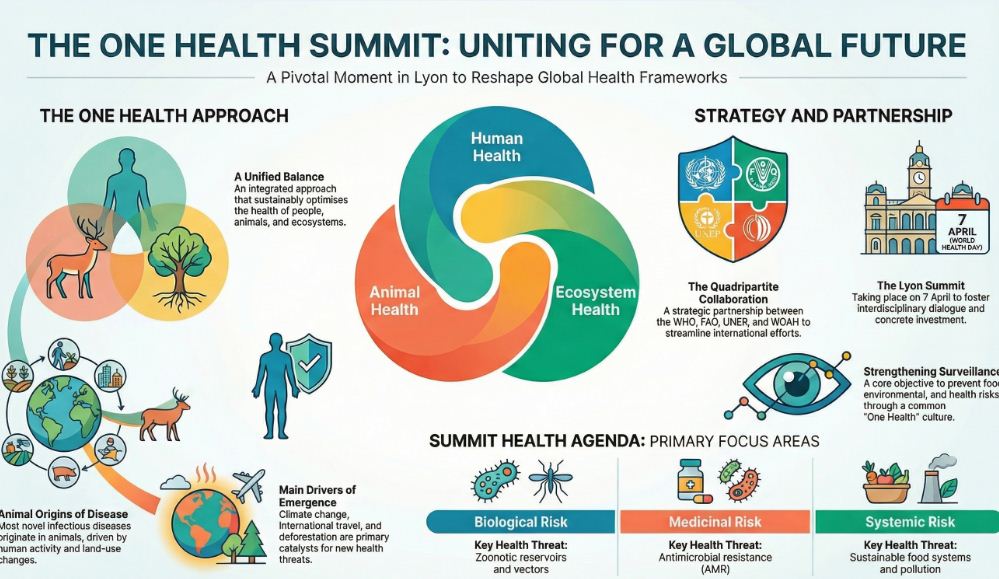 Why in News ? The One Health Summit recently took place in Lyon, France, with the High-Level Summit on 7 April, coinciding with World Health Day.
