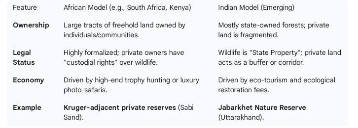 The “Reality”: Currently, many private “reserves” in India are actually just eco-resorts with little focus on genuine habitat restoration or scientific monitoring.