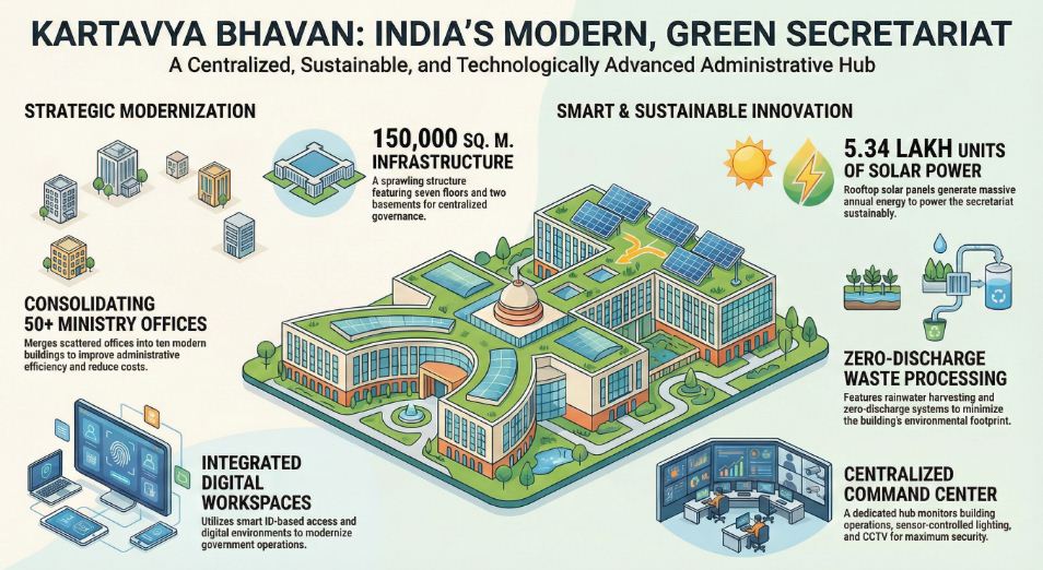 - A newly constructed Common Central Secretariat (CCS) building, designed as a green, smart, and centralised headquarters for key Union ministries under the Central Vista redevelopment plan.