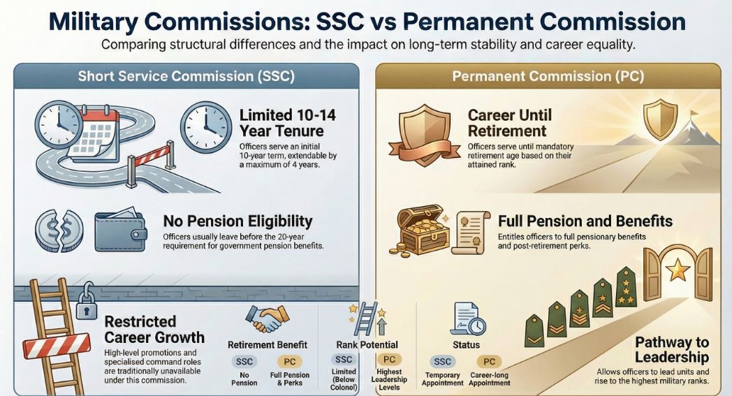 | Feature | Short Service Commission (SSC) | Permanent Commission (PC) |