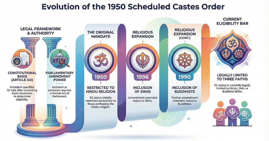 The Original Mandate (1950): Initially, the order stated that “no person who professes a religion different from the Hindu religion shall be deemed to be a member of a Scheduled Caste.”