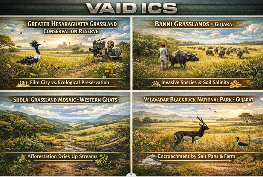 • The “Wasteland” Myth: Historically, Indian land records often classify grasslands as “wastelands” because they don’t produce timber or high agricultural tax revenue. This makes them vulnerable to being diverted for industrial use.