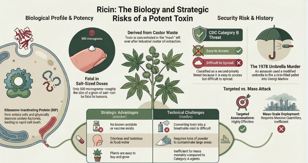 Accessibility Castor plants grow like weeds in India; beans are easy to buy. Weaponization: Converting it into an aerosol (mist) that people can breathe is technically very difficult.
